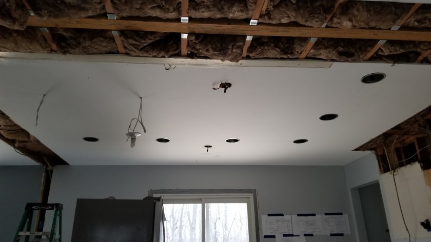 –There will be enough can and pendant lights (11 we think) to draw bugs right through the window on a summer night!